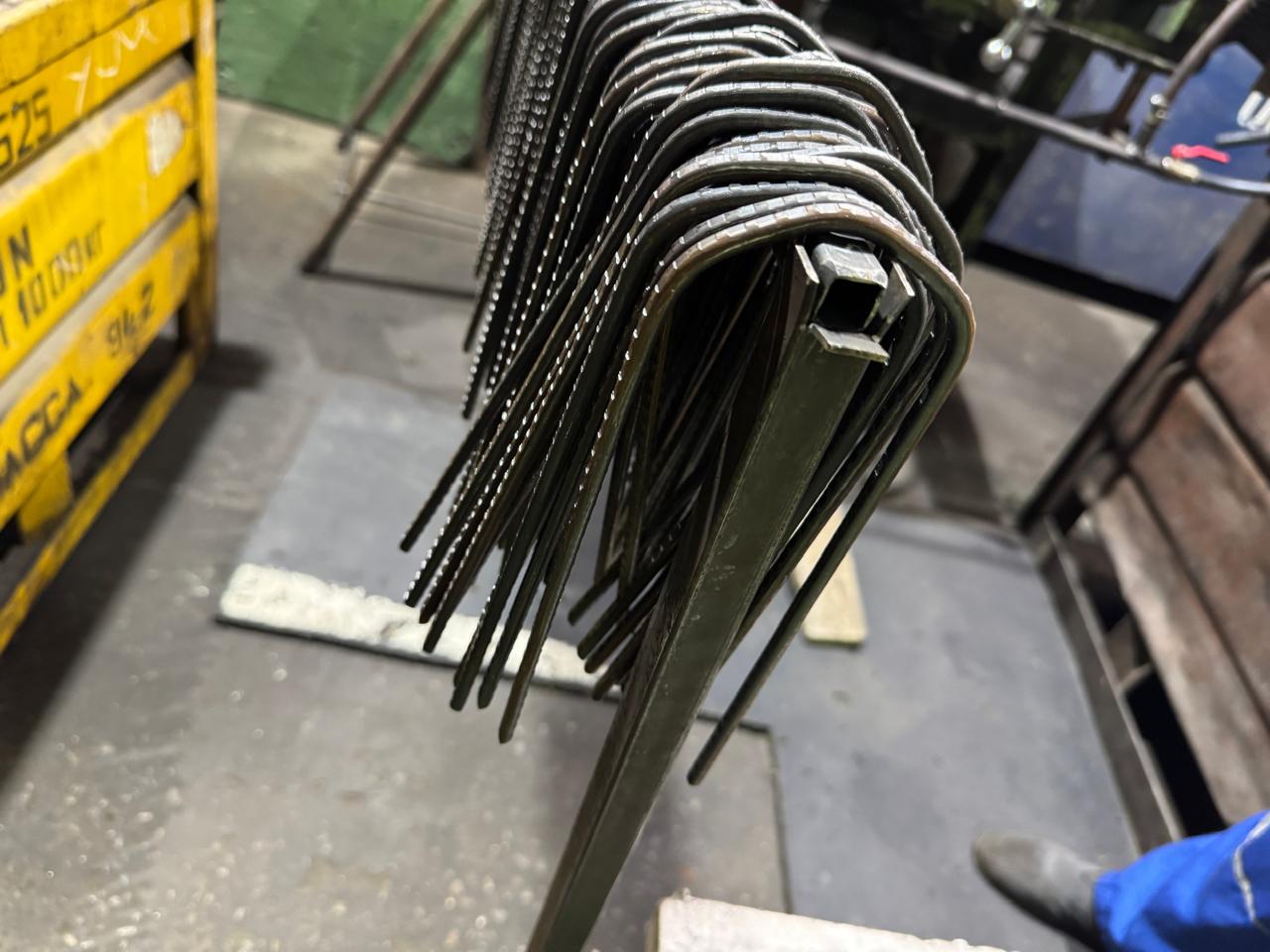 Наша компания предлагает услуги по 2D-гибки проволоки. На предприятии работает одноголовочный станок с ЧПУ, для двухмерной гибки проволоки диаметром от 4,0 до 12,0 мм. Данное оборудование позволяет с большой производительностью изготавливать сложные изделия, обеспечивая при этом высокую точность и серийную повторяемость деталей.